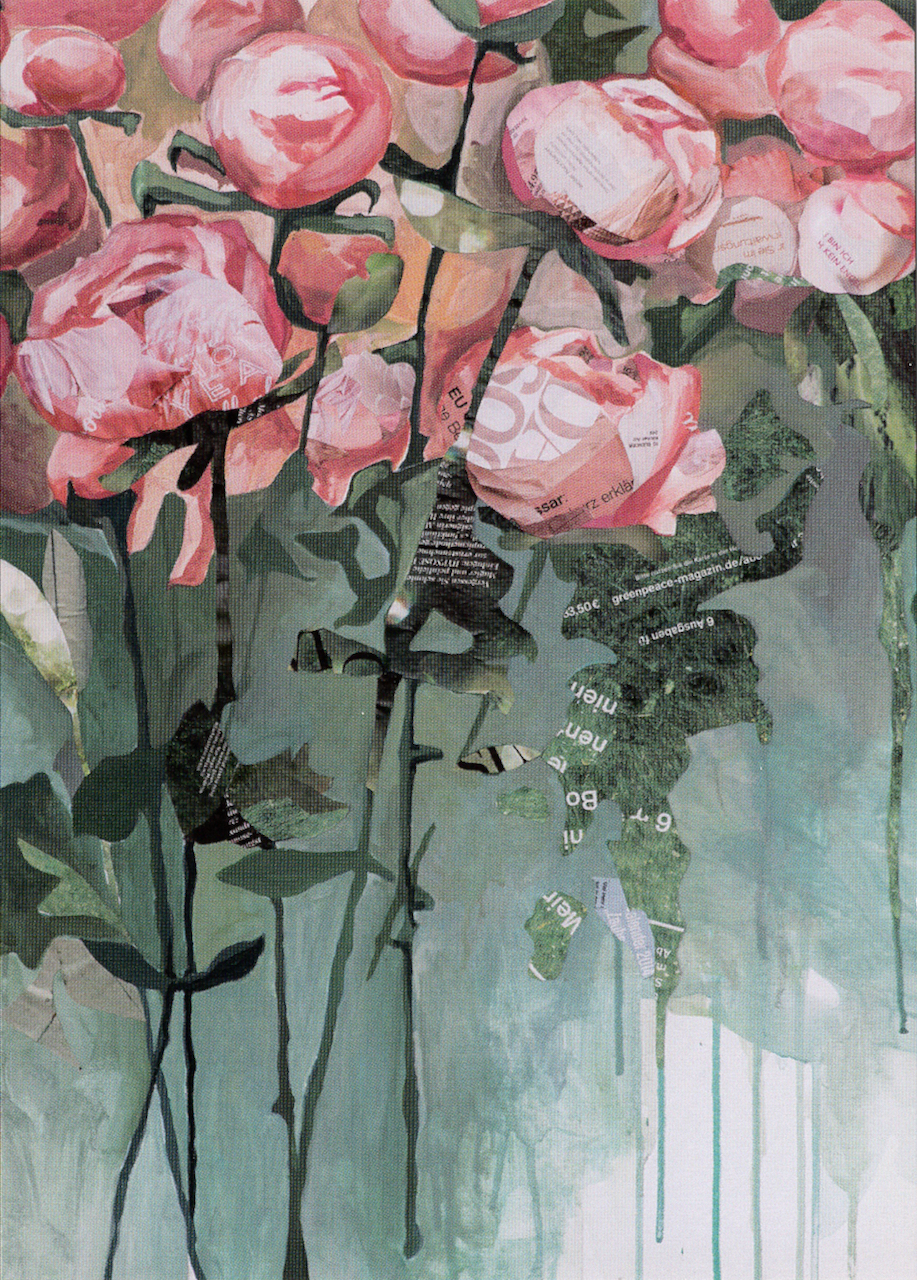Motiv: Pfingstrosen, Collage, Mixed Media
